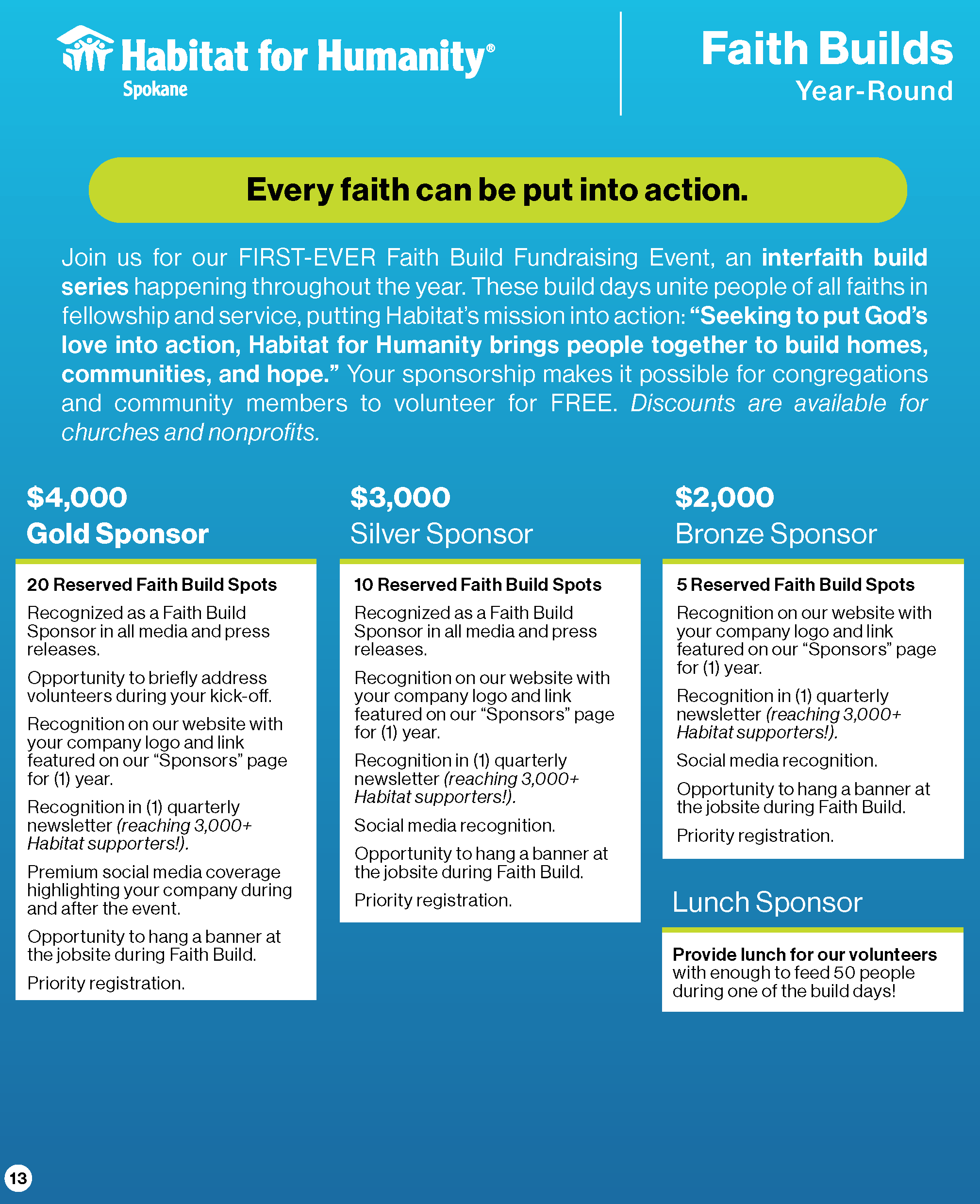YES! We want to align our company with Habitat for Humanity's mission and SPONSOR an event!